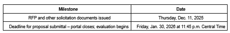 The deadline to submit a proposal is Friday, Jan. 30, 2026, at 11:45 p.m. Central Time.
