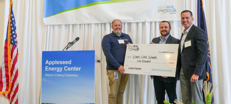Community support: During the ribbon-cutting event, NextEra Energy Resources presented a $5,000 donation to the Lewis Cass Schools in support of local initiatives.
