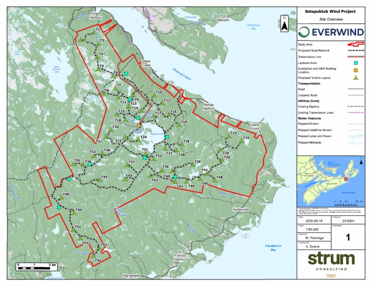 Owned by EverWind NS Holdings Ltd. in partnership with Membertou Development Corp., it will be located in the Municipality of the District of Guysborough.