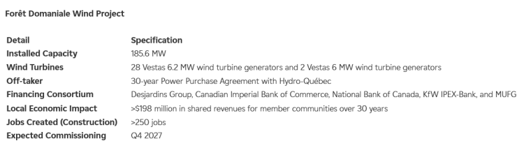 "Closing this financing reflects both the economic strength and strategic significance of the Forêt Domaniale Wind project in advancing Quebec's clean energy future, as well as the value of our ongoing partnership with local communities," said Amy Lloyd, CFO of EDF power solutions North America. "We are deeply thankful to our financial partners whose commitment has enabled us to move confidently into the construction phase. Beyond adding low-carbon capacity to the Hydro-Québec network, we're creating a meaningful climate victory and a long-term economic legacy for the region."