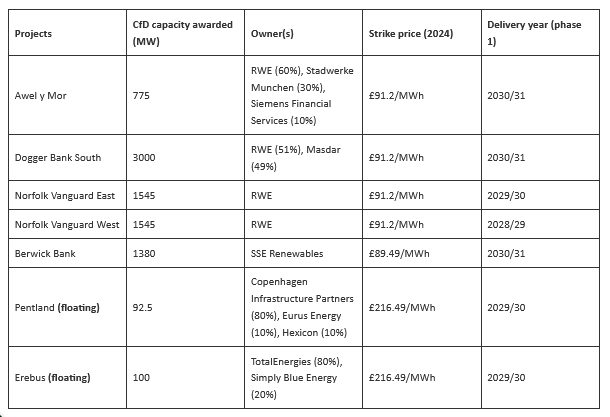 AR7 awarded 6 offshore wind projects and 2 floating wind projects.